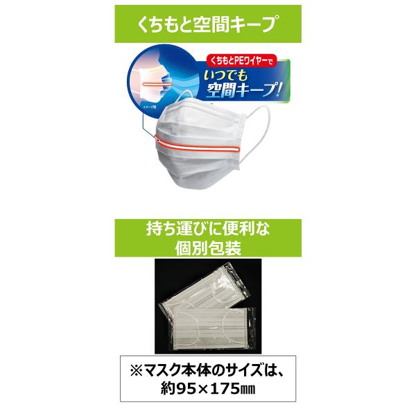 2.くちもとPEワイヤー採用。マスクが口に張り付くのを防ぎ、くちもとの空間をキープする