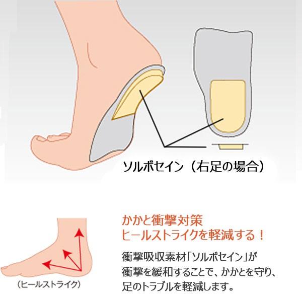 「ソルボ疲労対策 ヒールタイプ」は、衝撃吸収素材「ソルボセイン」が衝撃を緩和することで、かかとを守り、足のトラブルを軽減します。