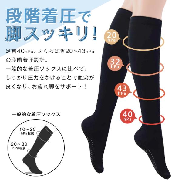 すべり止め付き!強圧&段階着圧で脚スッキリ!着圧靴下