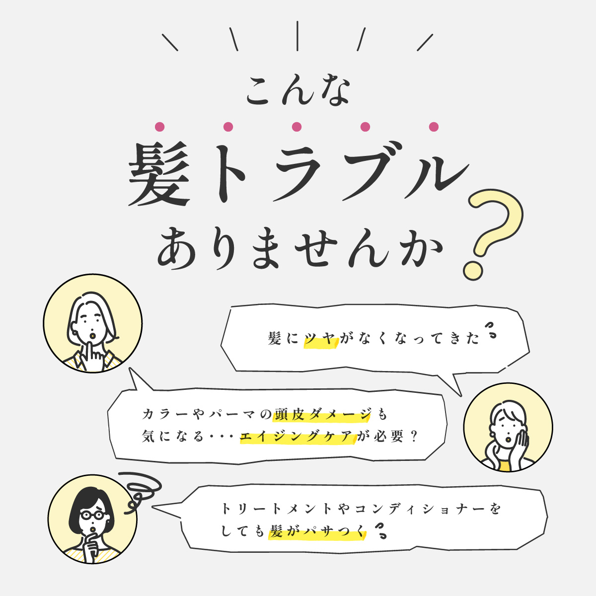 <こんな髪トラブルありませんか?>