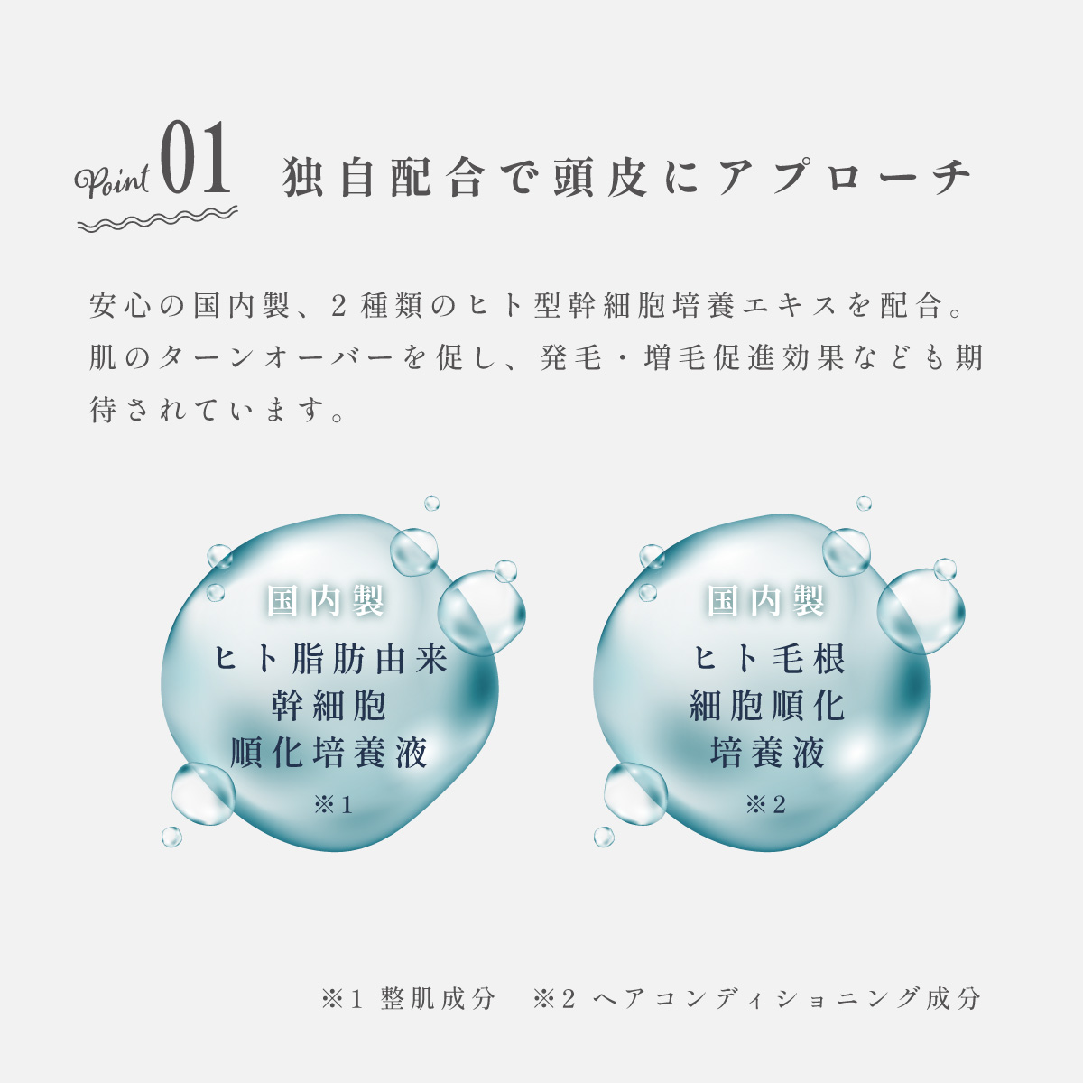 ヒト型幹細胞培養エキス2種+ダメージ補修成分「ケラチン」3種を配合