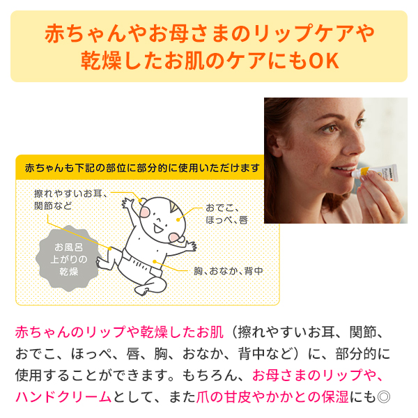 ・赤ちゃんやママのリップケア、乾燥したお肌ケアにも
