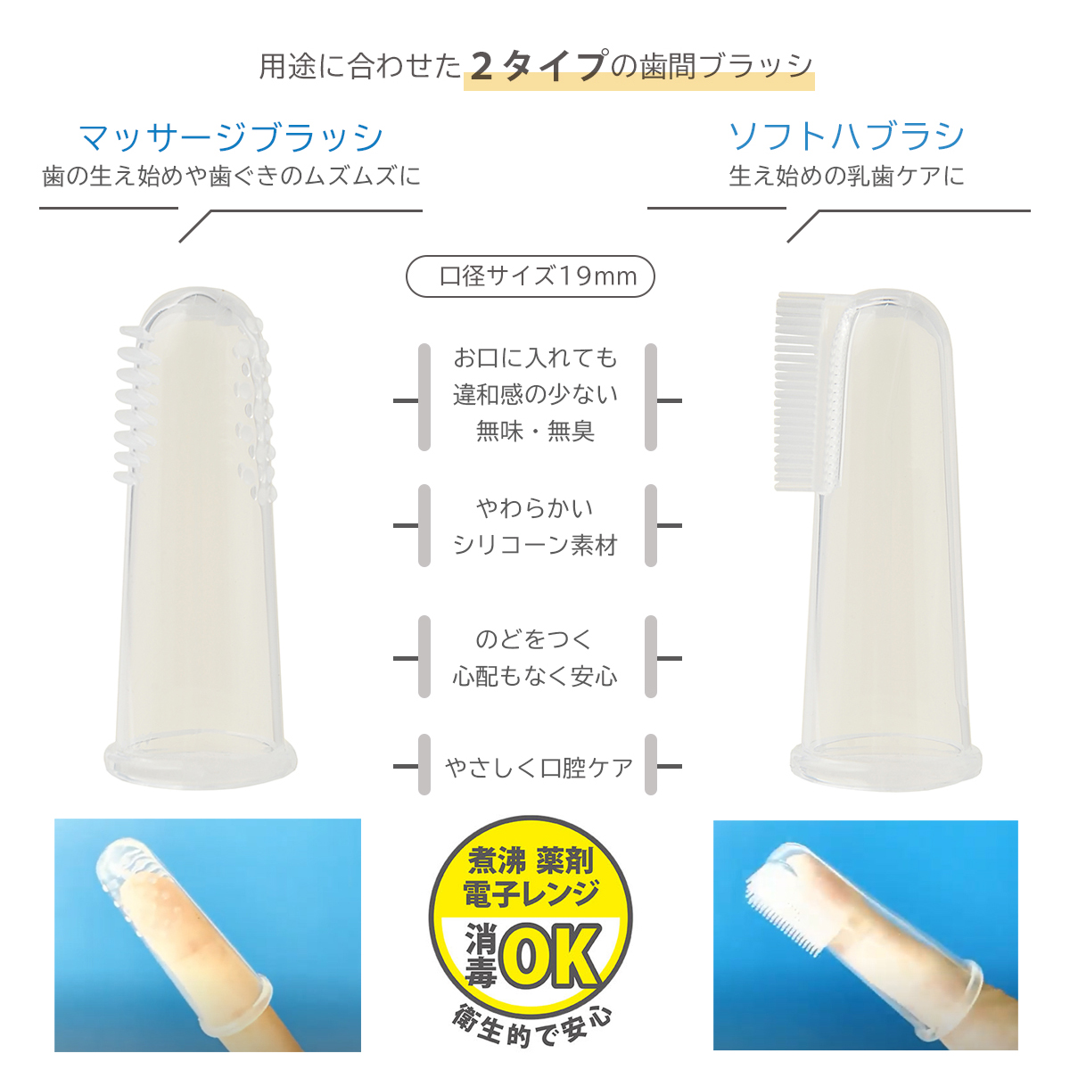 <用途に合わせた2タイプの指歯ブラシ>