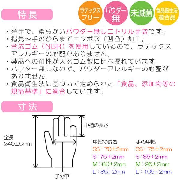 ・薄手で、柔らかいパウダー無しニトリル手袋です。