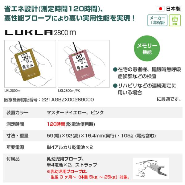 ルクラ 2800m パルスオキシメーター ユビックス 乳幼児用プロープ付 日本製 プロ仕様 小児 LUKLA