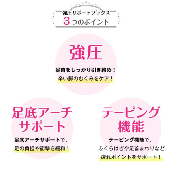 究極 強圧 サポート 着圧ソックス 着圧ストッキング 足底アーチサポート 3足セット 滑り止め無し テーピング機能 日本製 S〜L kenkofan ポスト投函送料無料