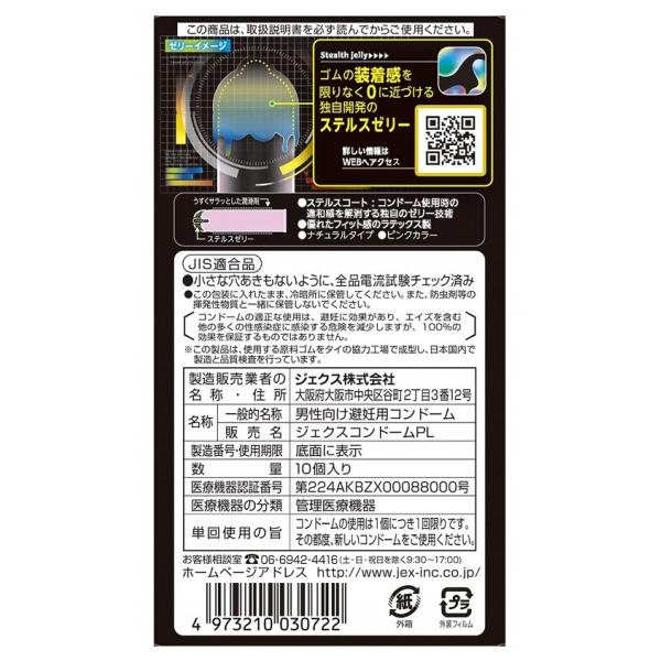 独自に開発した「ステルスゼリー」を、天然ラテックス製コンドームの表面にジェクス史上最大量塗布し、まるで装着してないかのようなナマ感覚の「ステルスコート」を実現しました。