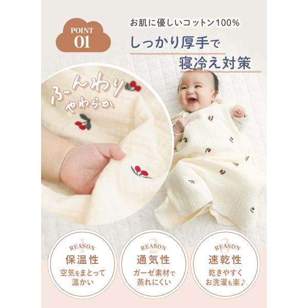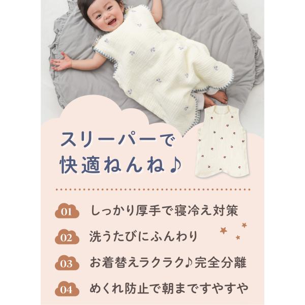 (ケラッタ) イブル スリーパー 赤ちゃん 6重ガーゼ 新生児 春 夏 秋 冬 通年 出産祝いかわいい刺繍柄 ベビー 0歳 1歳 2歳 3歳 4歳 寝たまま着せられる