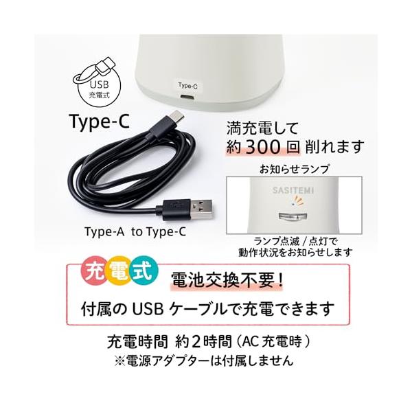 ・電源:リチウムイオン充電池 ※満充電から300本削れます。