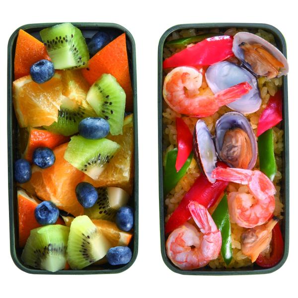 ビビットなカラーの2段弁当箱。おひとり様ランチから、ガッツリ食べたいパパのお弁当、みんなでシェアするパーティーサイズまで。500ml、600ml、750ml、900mlの4サイズと7つのカラーがラインナップ。ランチベルト付。食べ終わったらコンパクトに収納できます。