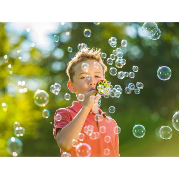 【プステフィックス社】1948年に科学者であったロルフ・ハイン氏が設立。彼が作り出した液から生まれるシャボン玉は、弾力性があり、空中で長く形を保ち、光があたると美しく虹色に輝きます。シャボン液の安全性はもとより、子どもの誤飲を防ぐための容器、シャボン玉がひと吹きでたくさん出てくるリングも初代ハイン氏の発明。一大で世界に市場を広げ、大企業となりました。3代目が経営する今では、競合メーカーもたくさん増えていますが、世界のプステフィックスの地位を守っています。品質の良いこのシャボン玉液はショービジネスの世界や、セラピーの一環としても活用され、人々に喜びとファンタジーを与え続けています。
