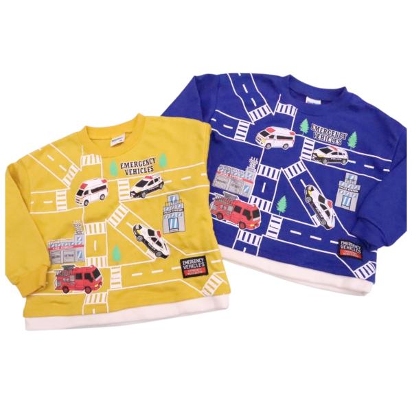 はたらく車 トレーナー 80cm 90cm 95cm 100cm 110cm 120cm 130cm 働く車 裏毛 消防車 救急車 子供服 男の子 パトカー キッズ ベビー トミカ トップス 救急車両