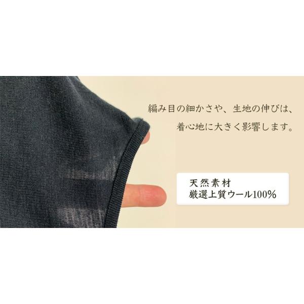 純毛の特性である穴の開いた構造で、保温性が化学繊維とは断然違います。ごく細い糸と編み方にこだわりました