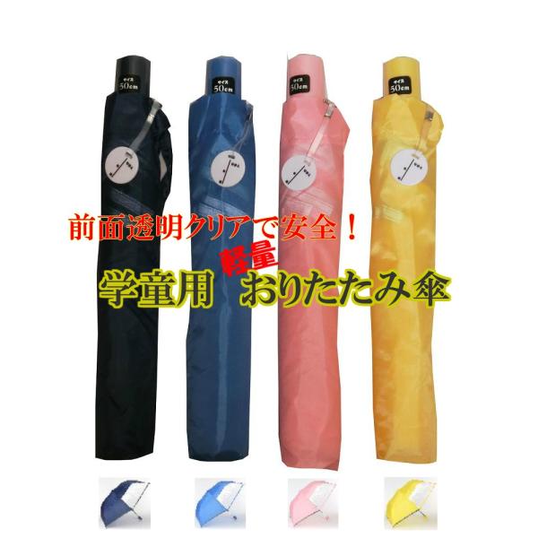 【透明窓&反射テープ付き】折りたたみ傘 通学用 子供用 キッズ 濃紺・イエロー・ピンク・ブルー 50cmおりたたみ傘 卒園記念品