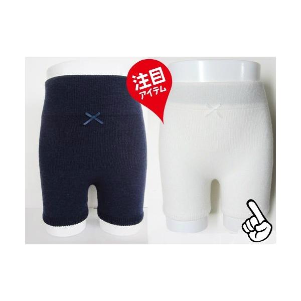 毛糸のパンツ キッズ 1分丈 紺・オフホワイト無地 日本製キッズ ジュニア リボンのワンポイント通園・通学に最適♪【メール便3枚まで】子供用毛糸のパンツ
