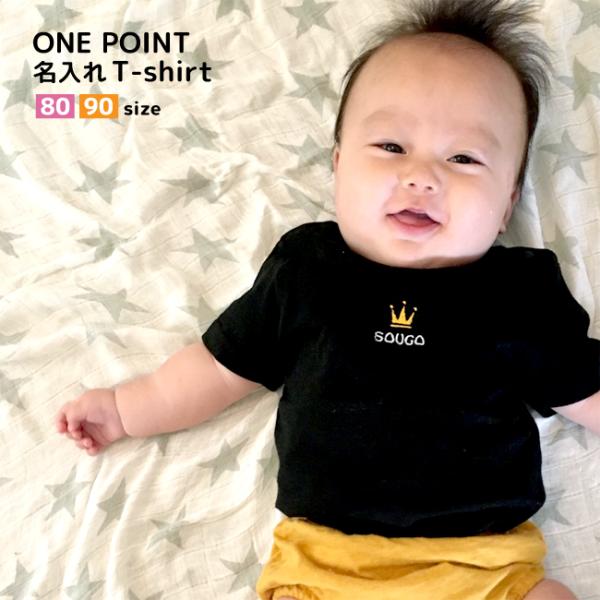 刺繍 名入れ ワンポイント Tシャツ / 半袖 刺繍 Tシャツ 名前入り / ベビー / 赤ちゃん / 子供 / 1〜2歳 / プレゼント お祝い 贈り物 出産祝い ネーム入れ