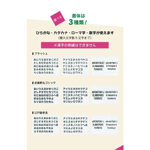 可愛い長方形キャラクターワッペン。イラスト、書体、カラーが選べてオリジナル名入れワッペンが作れます。