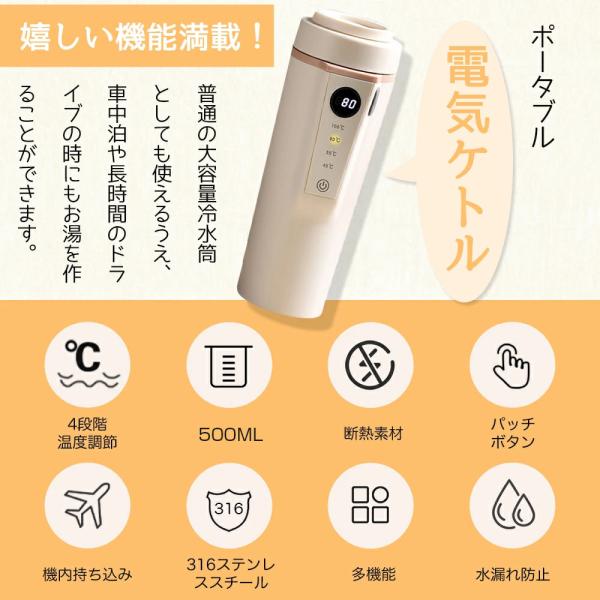 【限定7680円】電気ケトル 電気ケトル小型 4段階温度調節 車載 家庭用 500ML 保温 ステンレス ケトル さんじゅうこうぞう 湯沸かし 自動電源オフ ポータブル