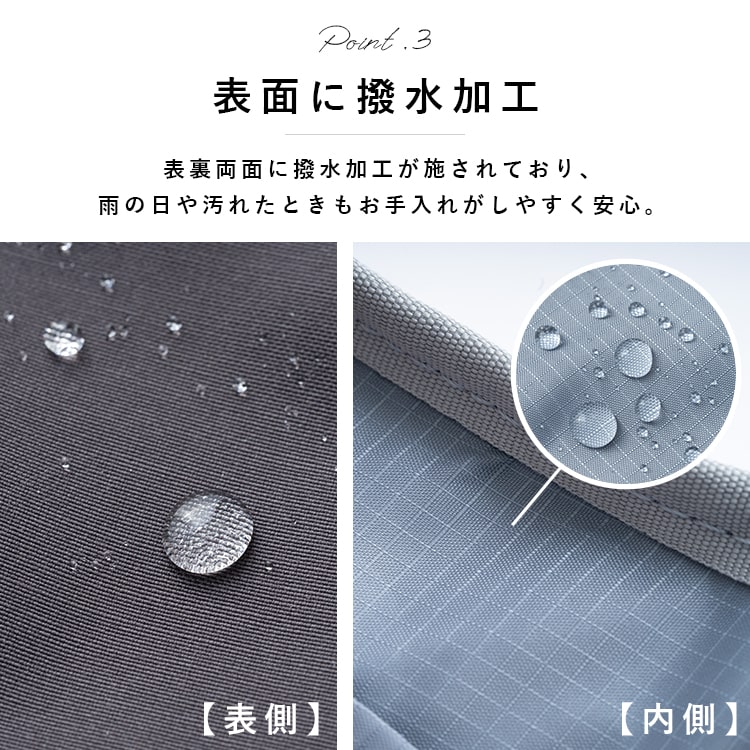 また表裏どちらの生地にも撥水加工が施された両面撥水で、雨の日でも安心。