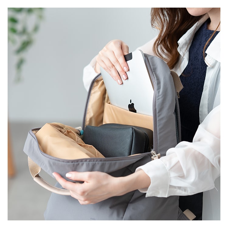 A4サイズ対応で15インチPCが収納可能なクッション入りポケットがあります。