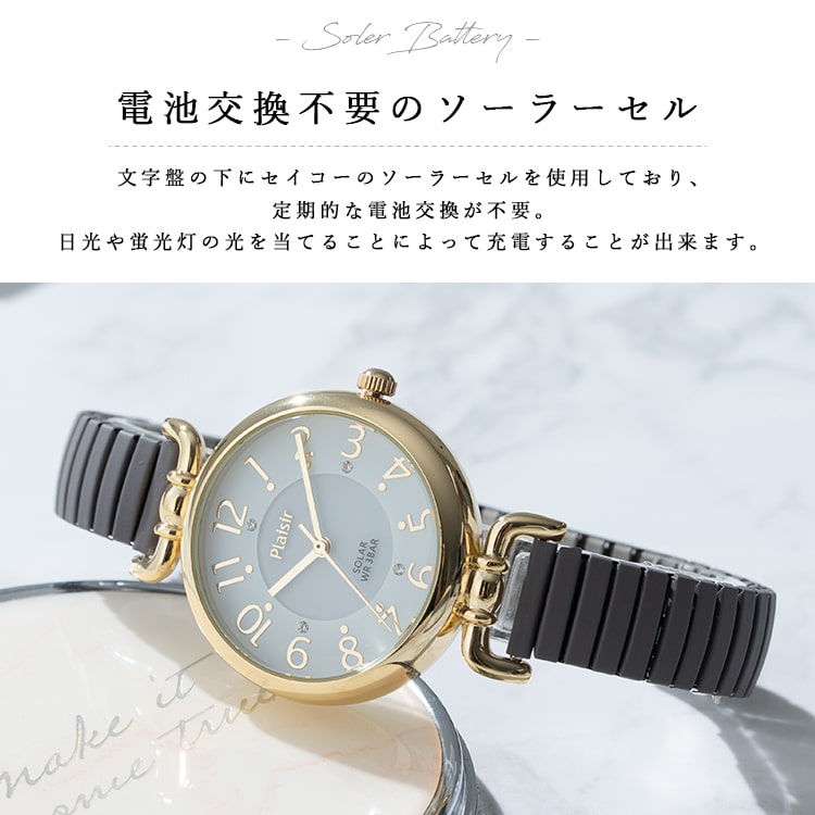 腕時計 レディース ソーラー ジャバラ 蓄光文字盤 3気圧防水 ブランド ニッケルフリー 20代 30代 40代 名入れ可 1年間のメーカー保証付 ギフト 爆買