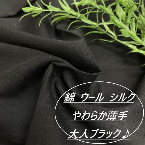 綿 ウール シルク 生地 布 長50cm単位で延長可能 やわらか 無地 ブラック 黒 布地専門店 kijiya /q14