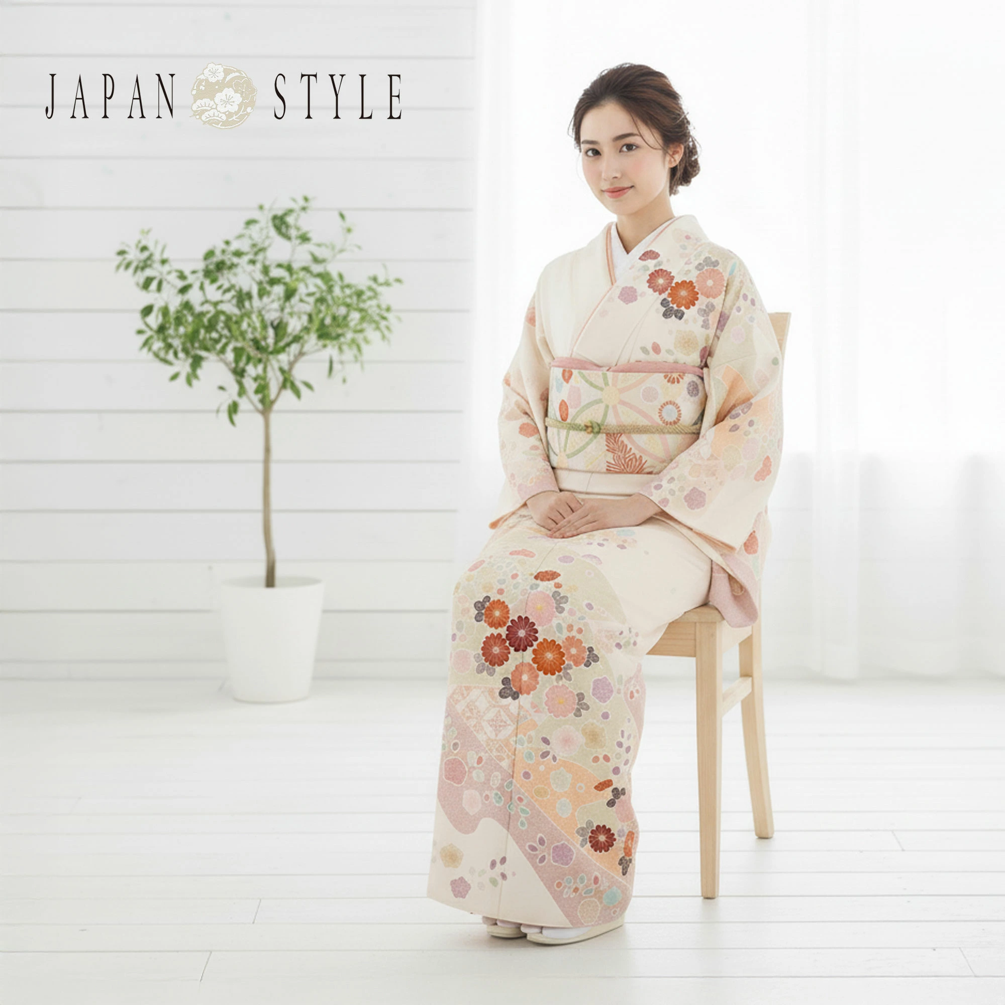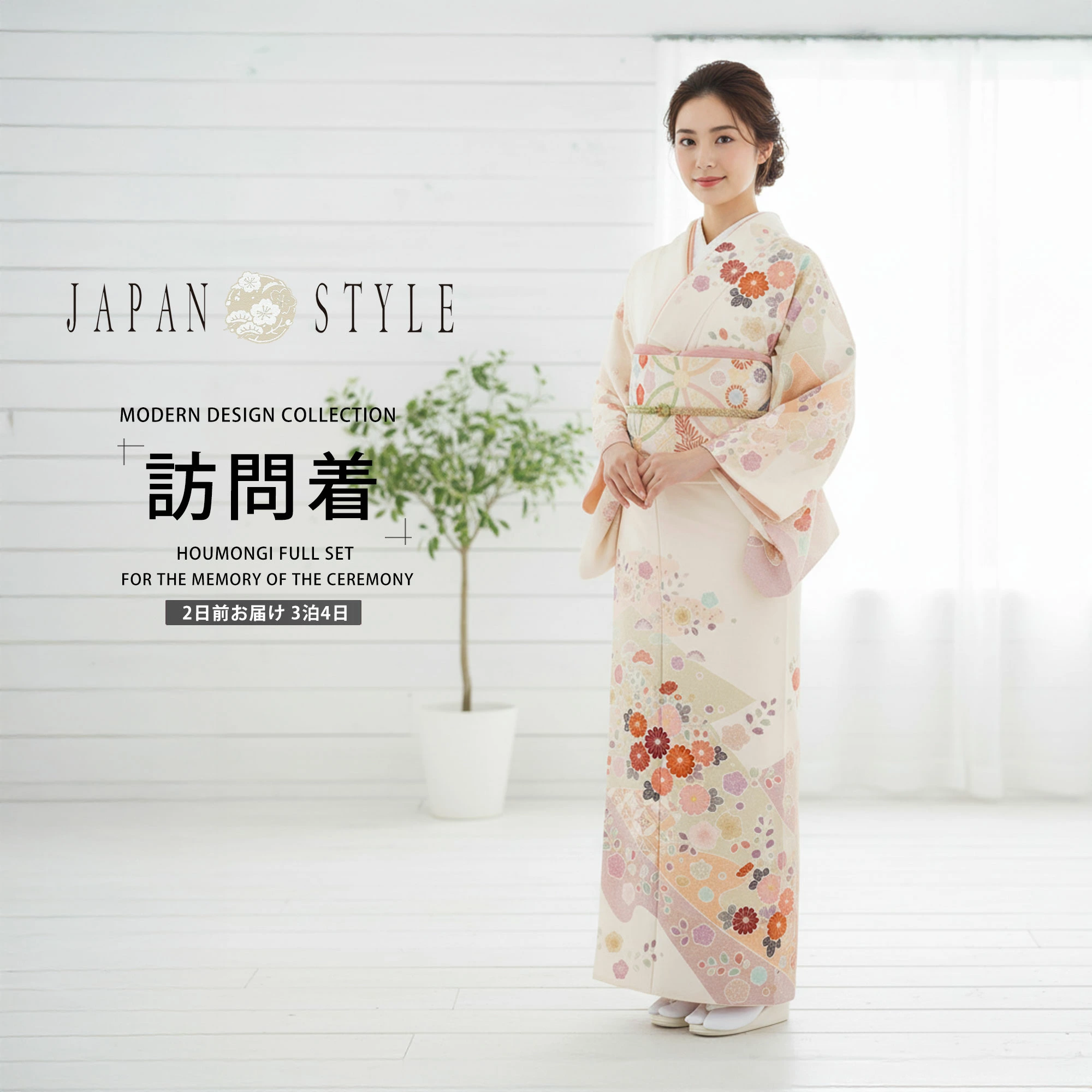 訪問着 レンタル商品 着物レンタル商品入学式 卒業式 七五三 お宮参り 結婚式 お宮参り 往復送料無料 JAPAN STYLE 梅 クリームNo.0107