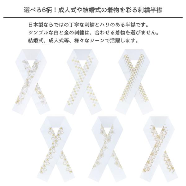 【在庫処分】白金 刺繍 半襟 上品な吉祥文様 日本製 振袖 成人式 半衿 白 ホワイト 金色 半襟 訪問着 結婚式 成人式 振袖 和装 麻の葉 七宝