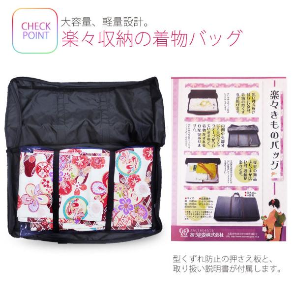 楽々きものバッグ マジックテープ式で収納簡単 防水加工 二尺袖 袴 振袖 着物あづま姿 バック
