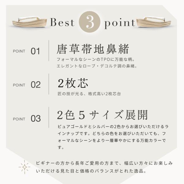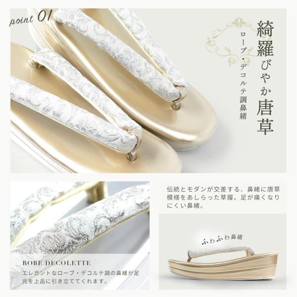 ローブデコルテ調 唐草の鼻緒 2枚芯 フォーマル 草履 レディース 選べる 2色 5サイズ Sサイズ フリーサイズ Mサイズ Lサイズ LLサイズ 3Lサイズ 単品 金 銀