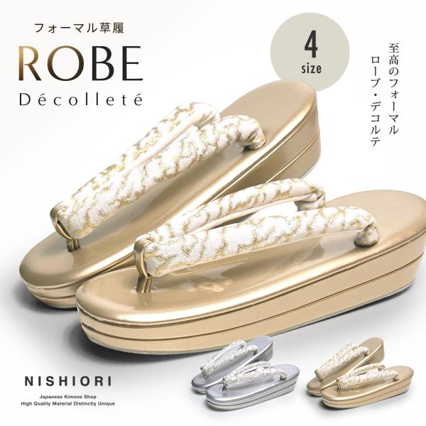 ローブ・デコルテ 帯地の鼻緒 フォーマル 二枚芯 草履 レディース 4サイズ 2カラー S M L LL 単品 金 銀 ゴールド シルバー