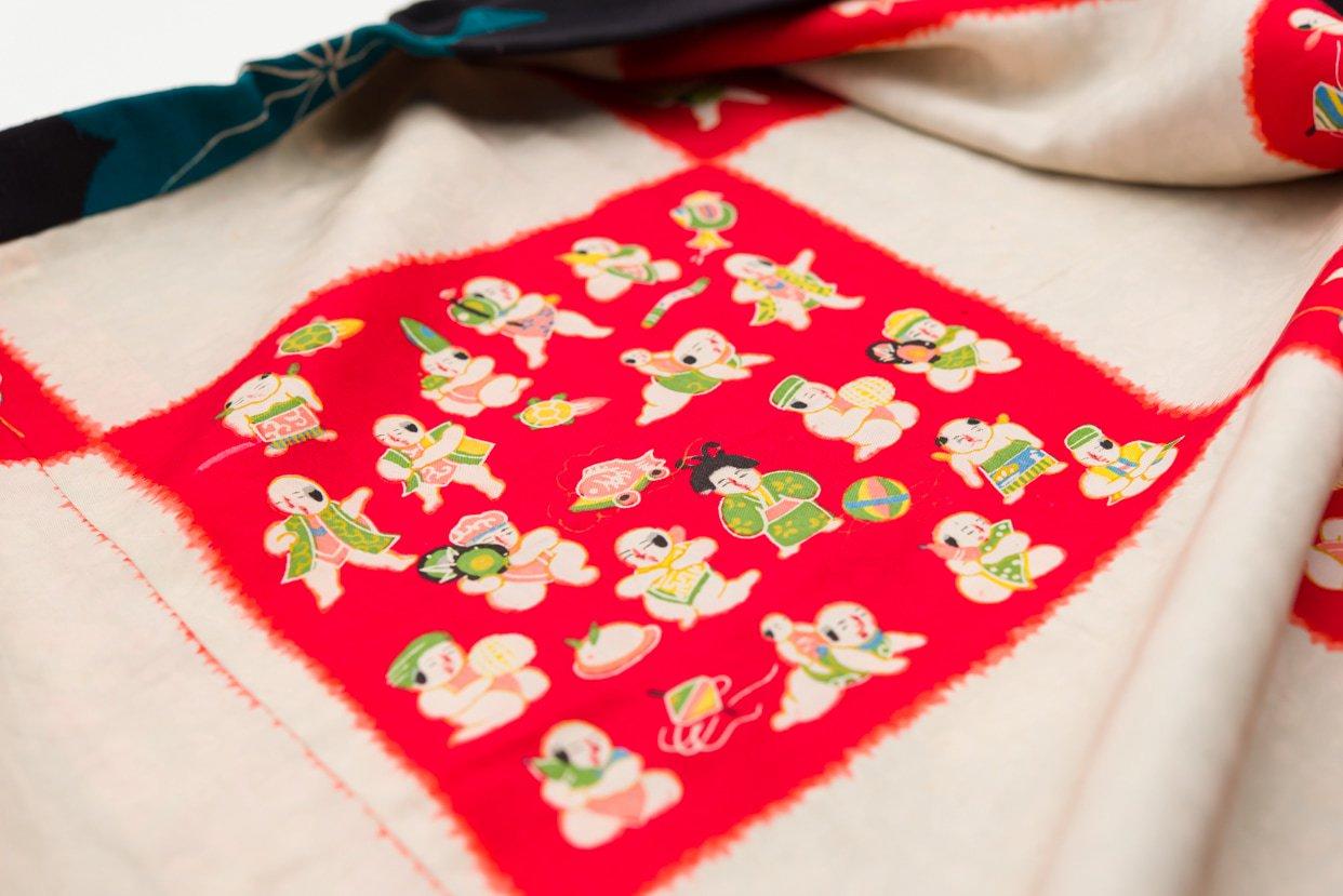 裏地にも小さな童子が描かれており、見えない部分にまでこだわったお洒落を垣間見ることができますね。