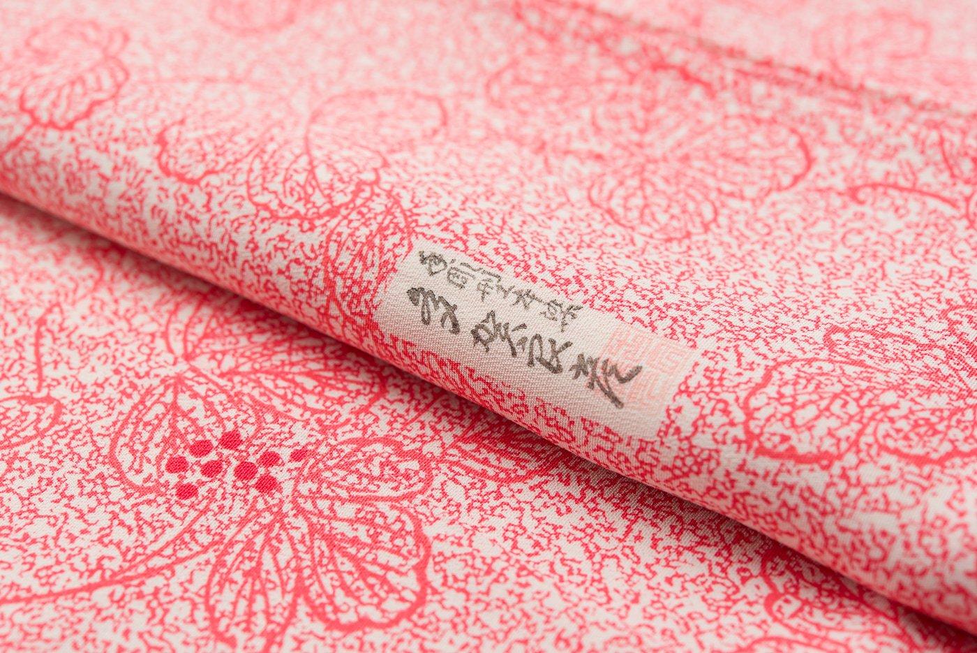 斑の地に小さな赤い実がさりげなく映える愛らしい着物ですね。