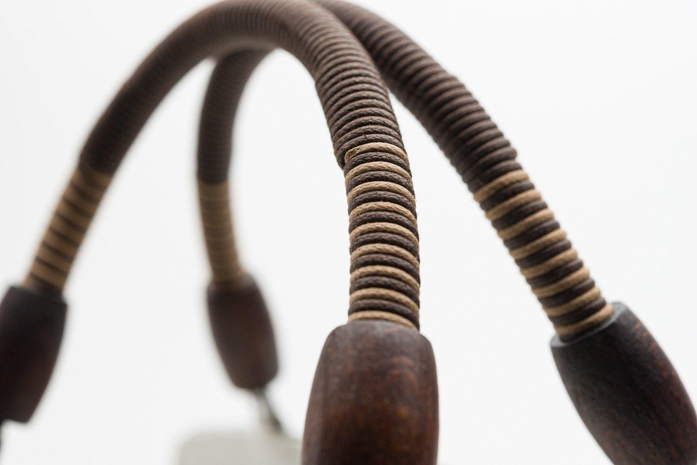 ファスナーの引き手に添えた小さなタッセルや、温かみのある木の持ち手など、細部にもこだわりを感じる素敵なバッグです。