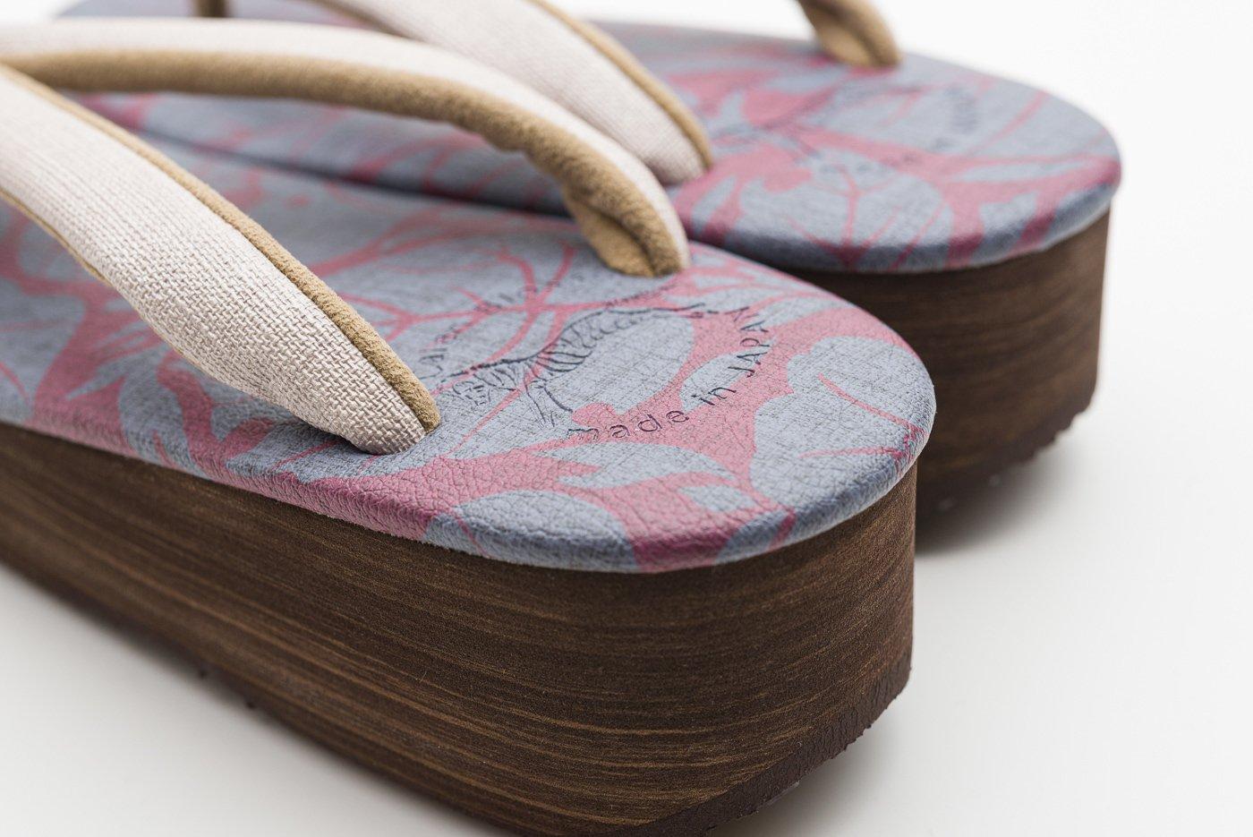 天に可愛らしい葉模様を染めたカレンブロッソのカフェぞうりです。