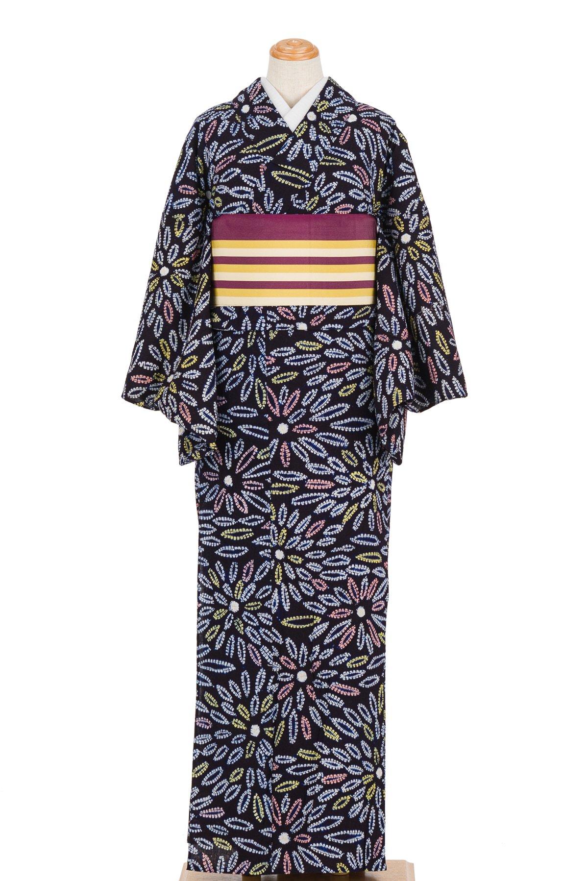 菊の花を染めた有松絞りの浴衣です。