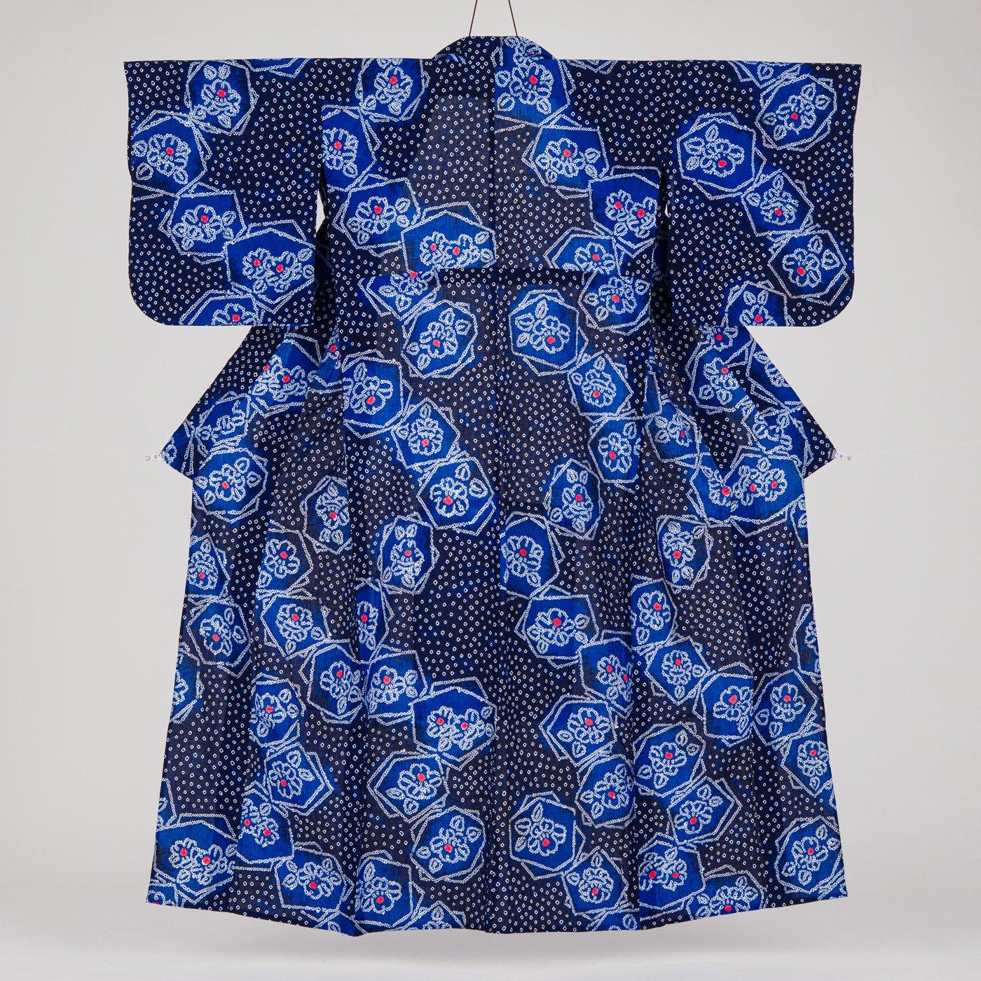 氷のような青い枠の中で小ぶりの花がぱっと咲く、愛らしいデザインです。