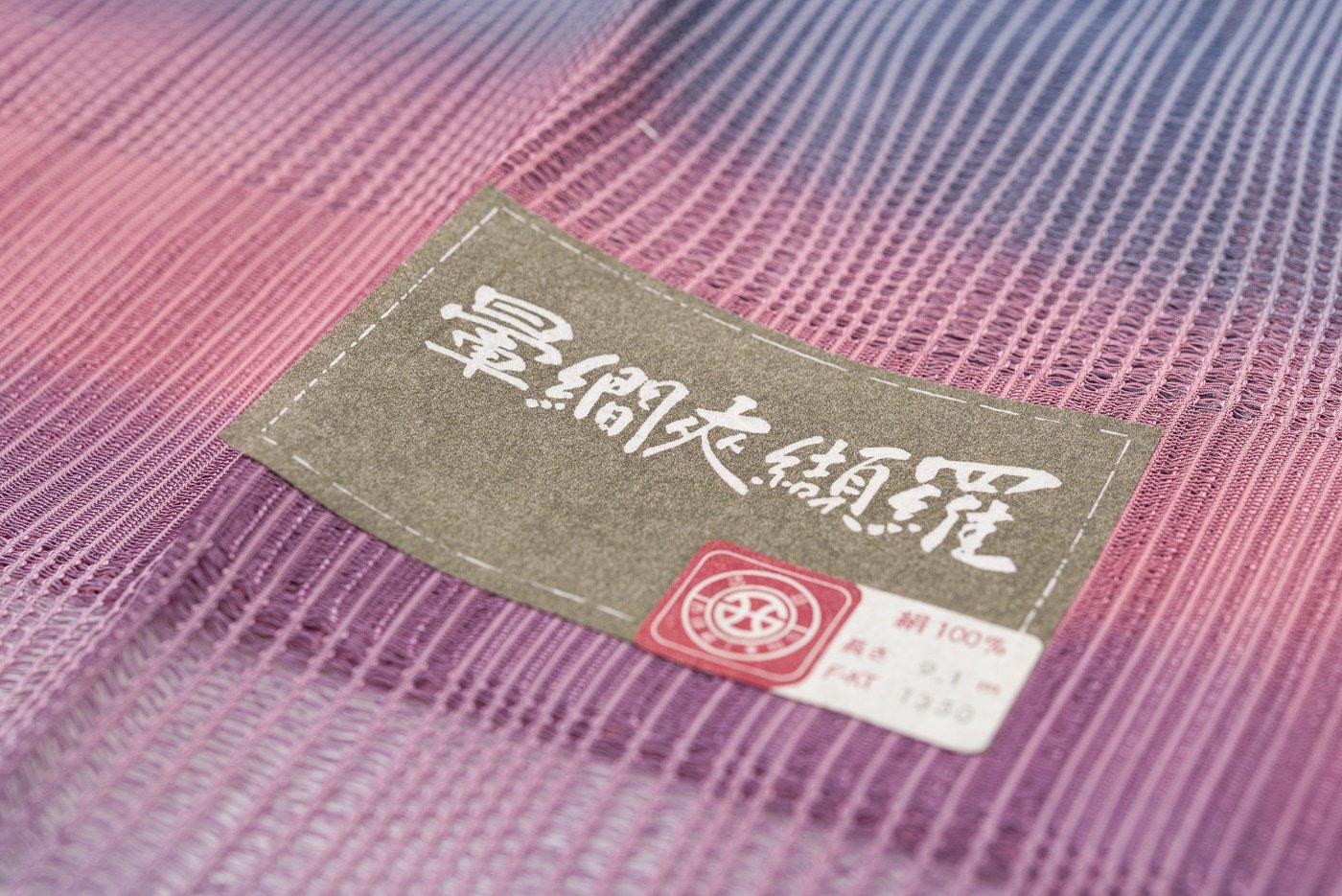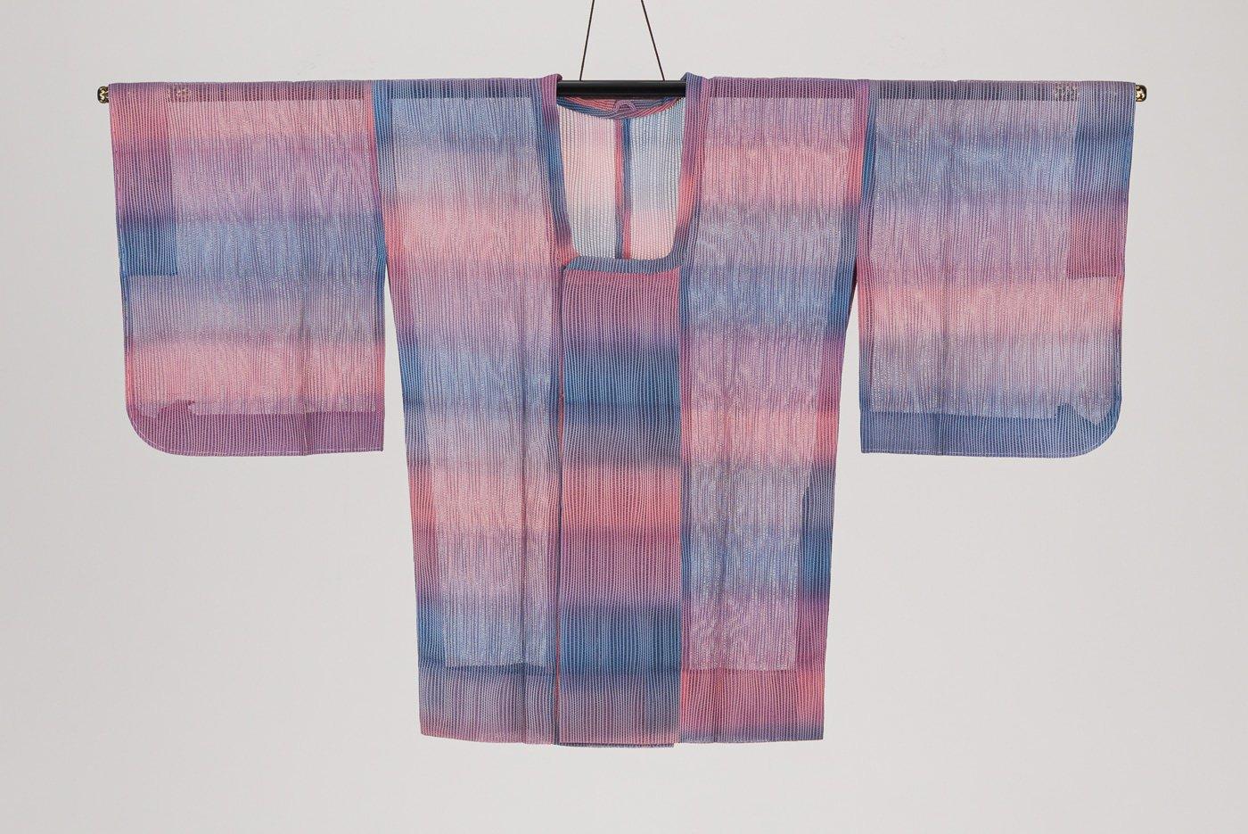 青とピンクの横段暈しが美しい羅の道行コートです。