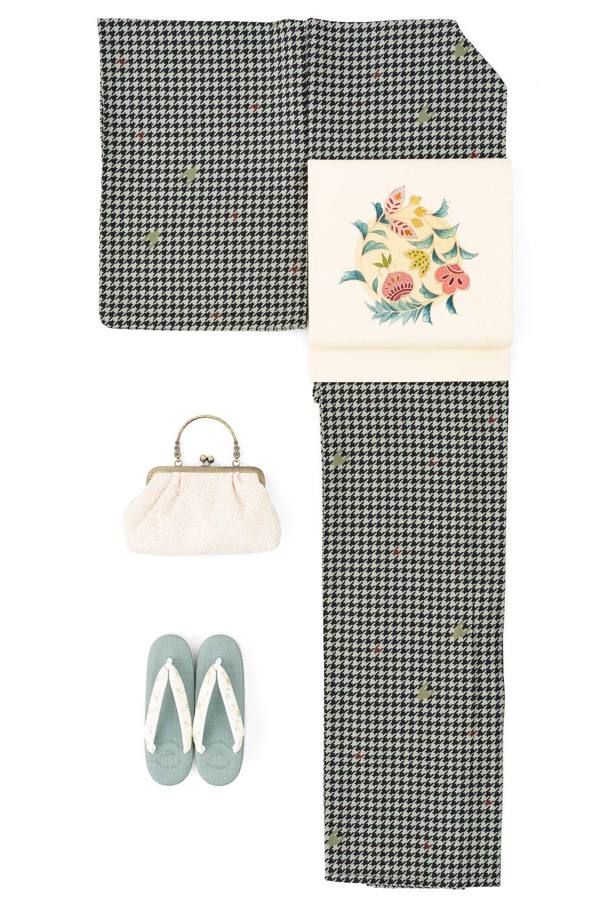 【M】新品 単衣 洗える着物 千鳥格子 薄緑