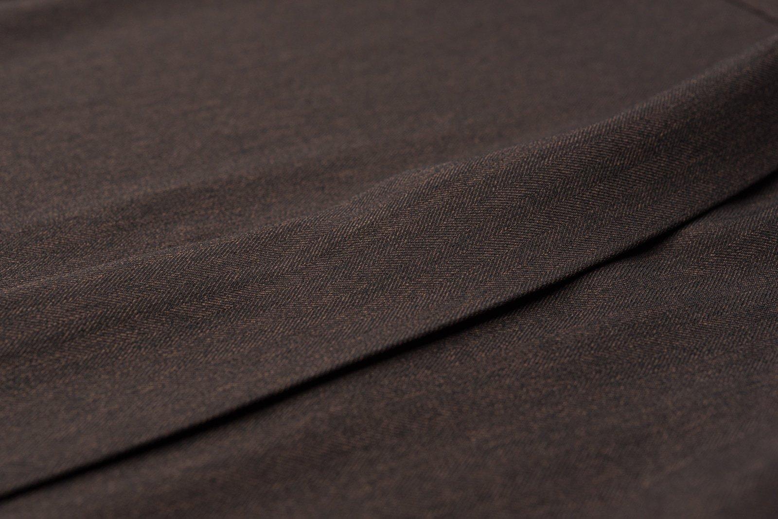 焦げ茶地にヘリンボーン風の地模様が入ったちょっとメンズライクな生地で格好良い1枚。