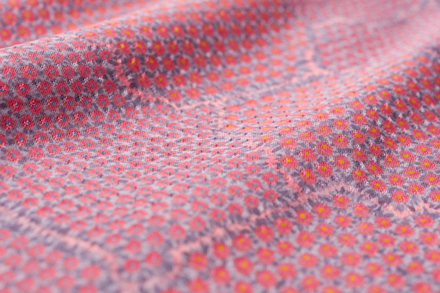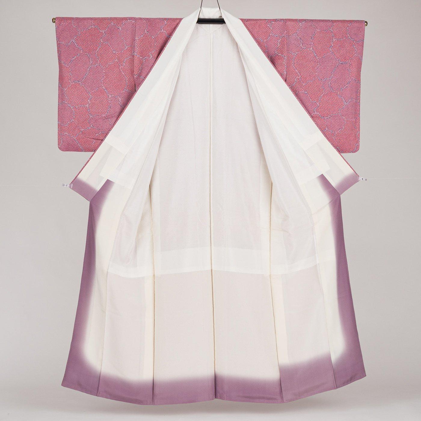 赤ピンクの鹿の子柄を着物全体に染めた小紋の着物です。