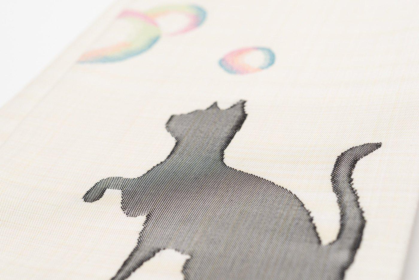 新品 ポイント柄 半幅帯 猫とシャボン玉 長尺