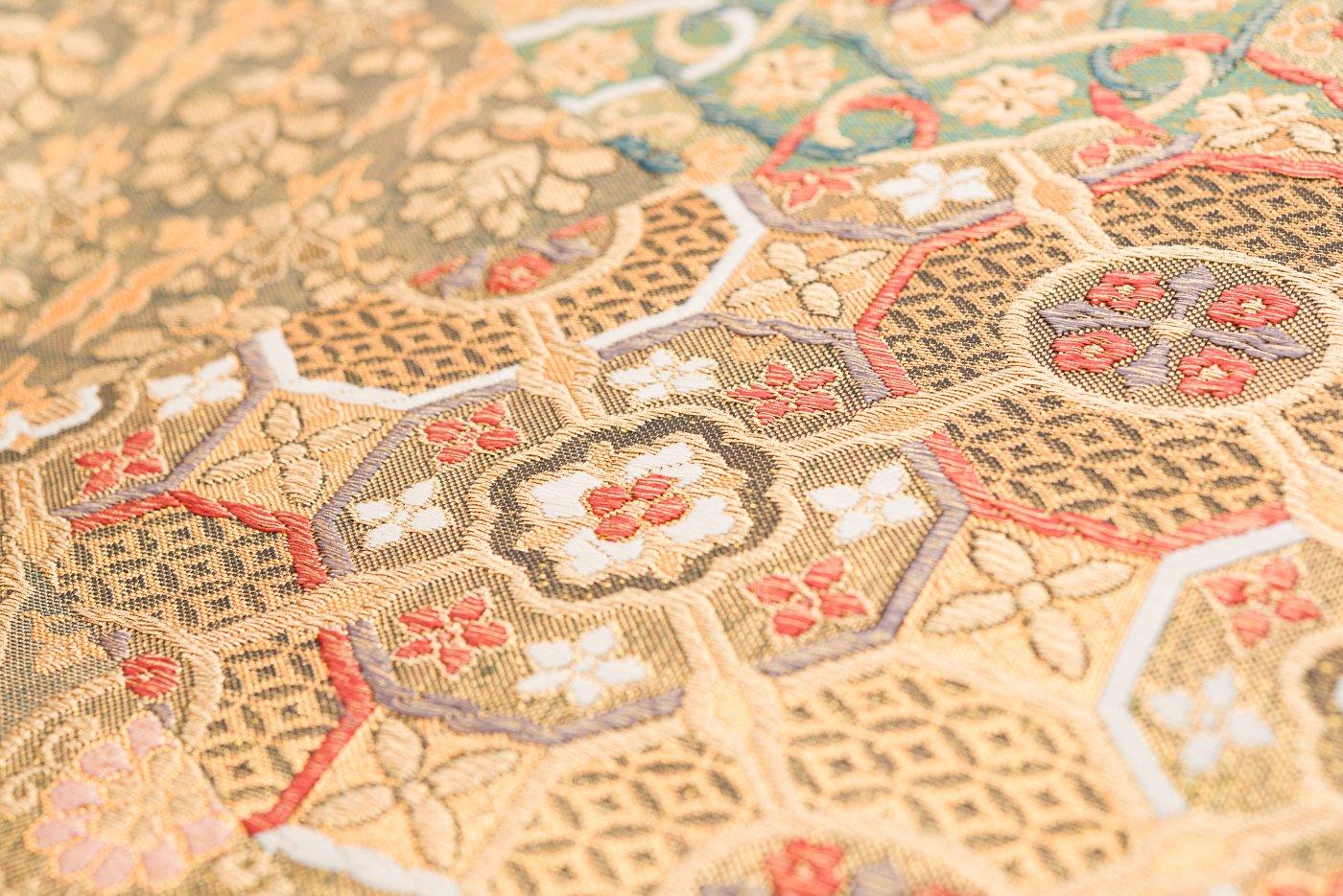 袋帯●切り嵌め柄 立涌 笹蔓緞子 唐花など