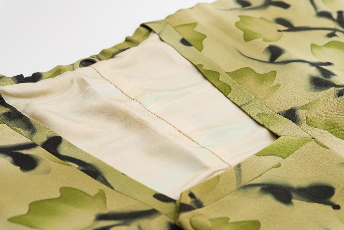 ロング道行コート 緑の花模様