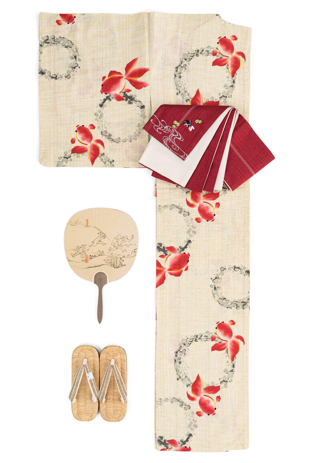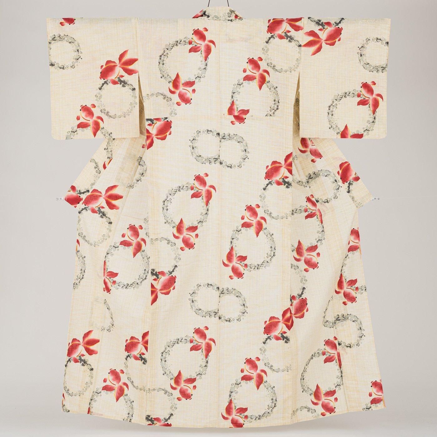 夏らしいモチーフ、金魚柄の綿麻浴衣です。