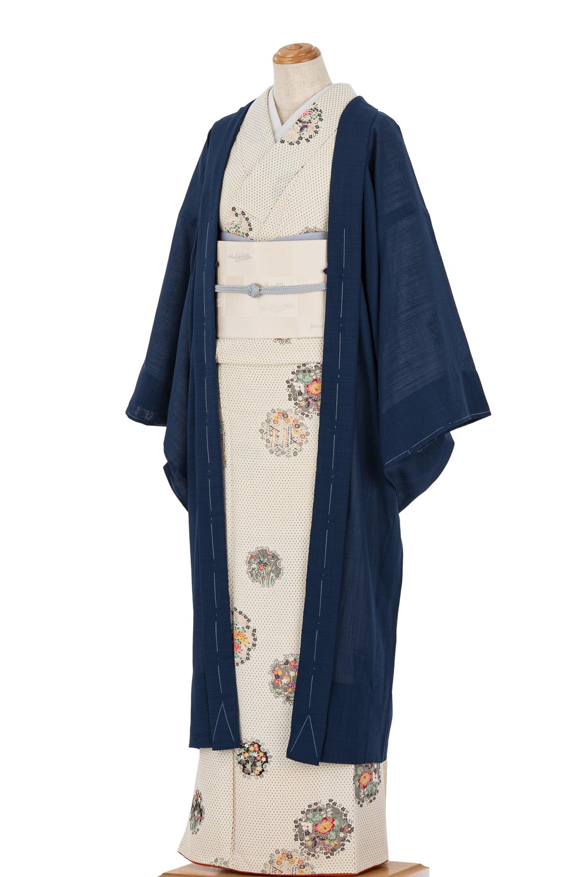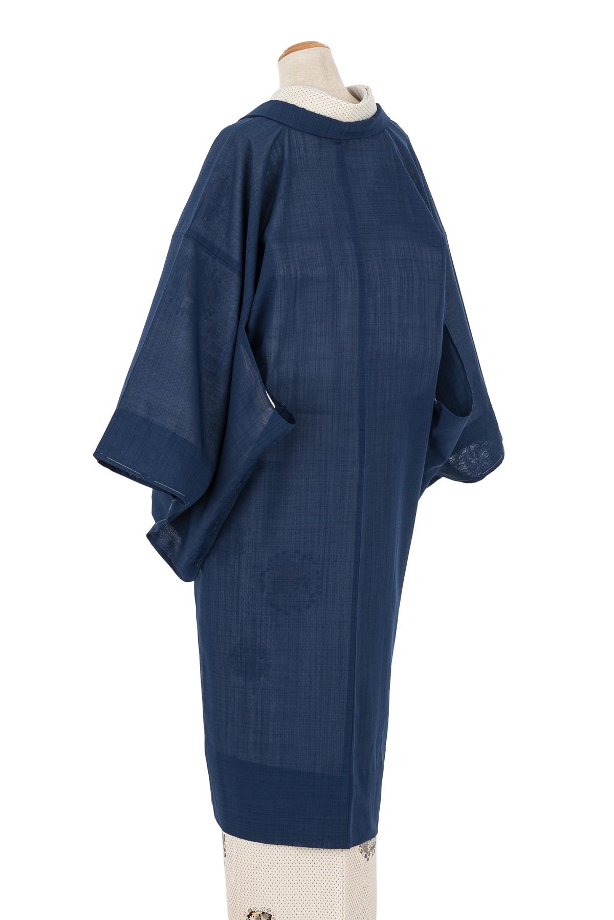 新品 洗える長羽織 紗紬 紺