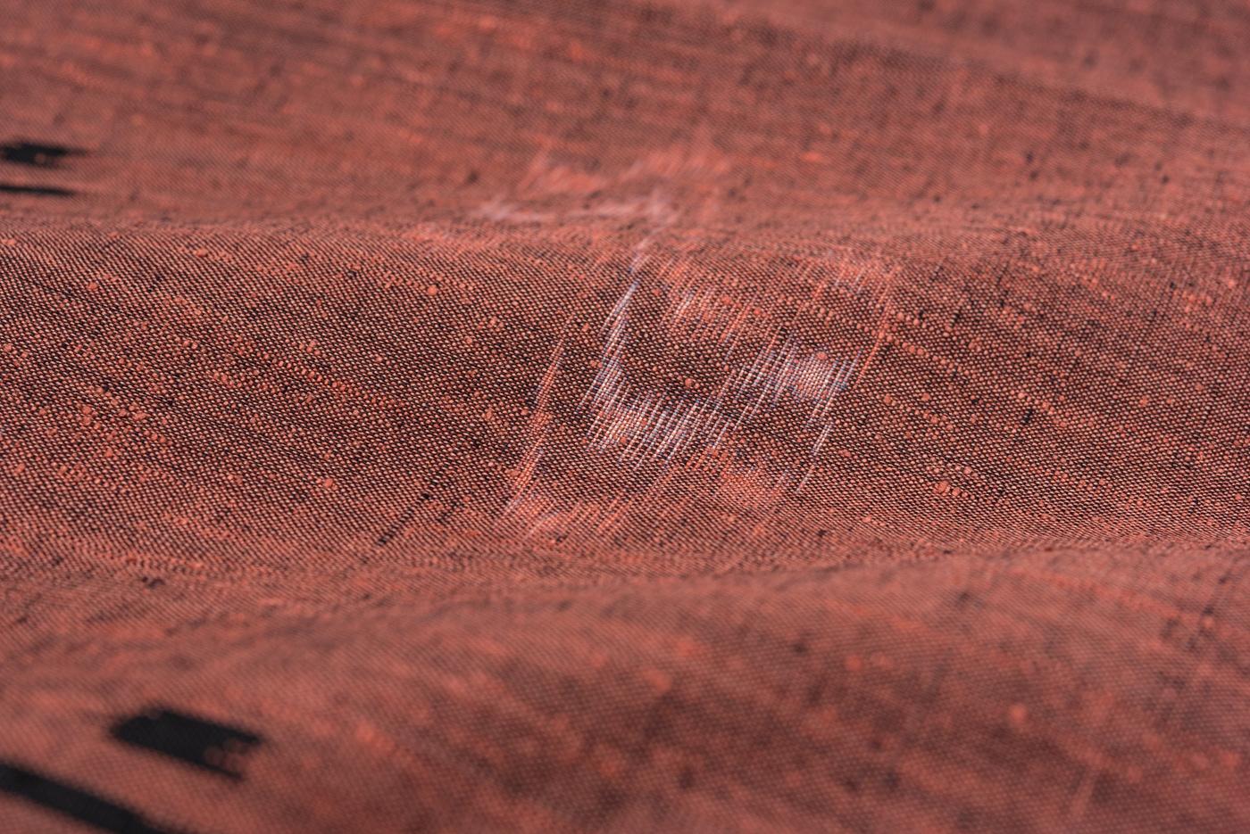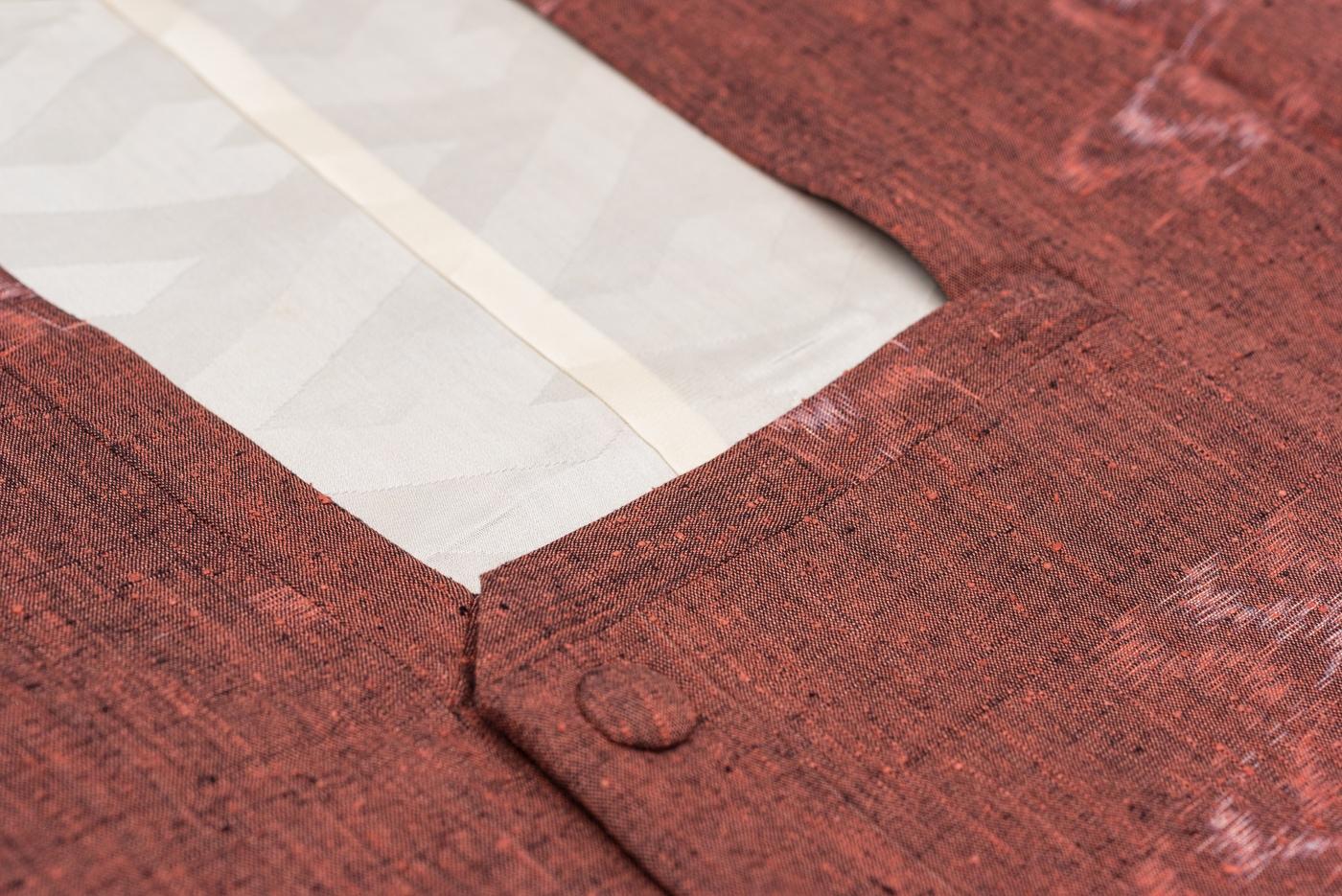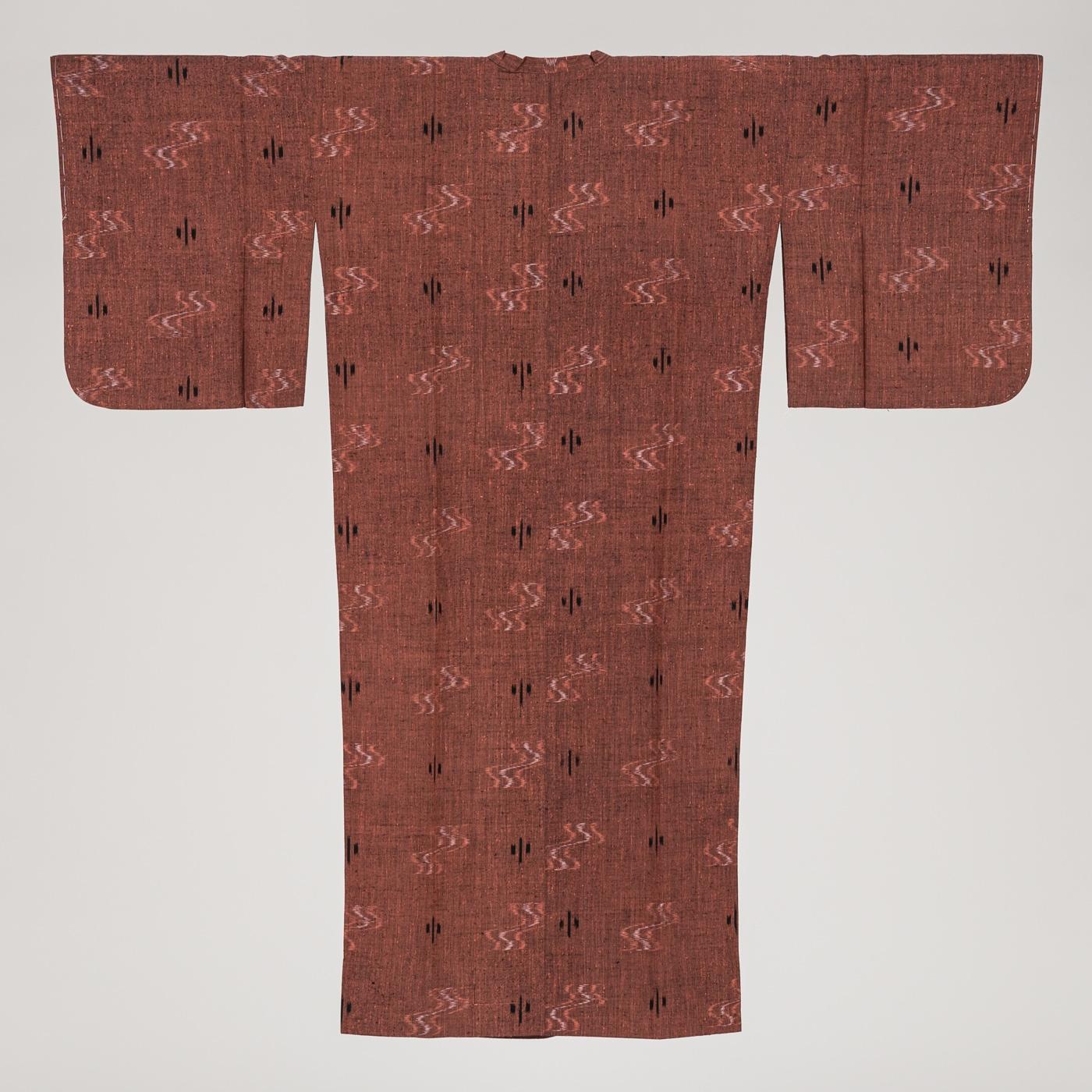 弁柄色の地に絣模様を織り出した紬地のロング道行コートです。
