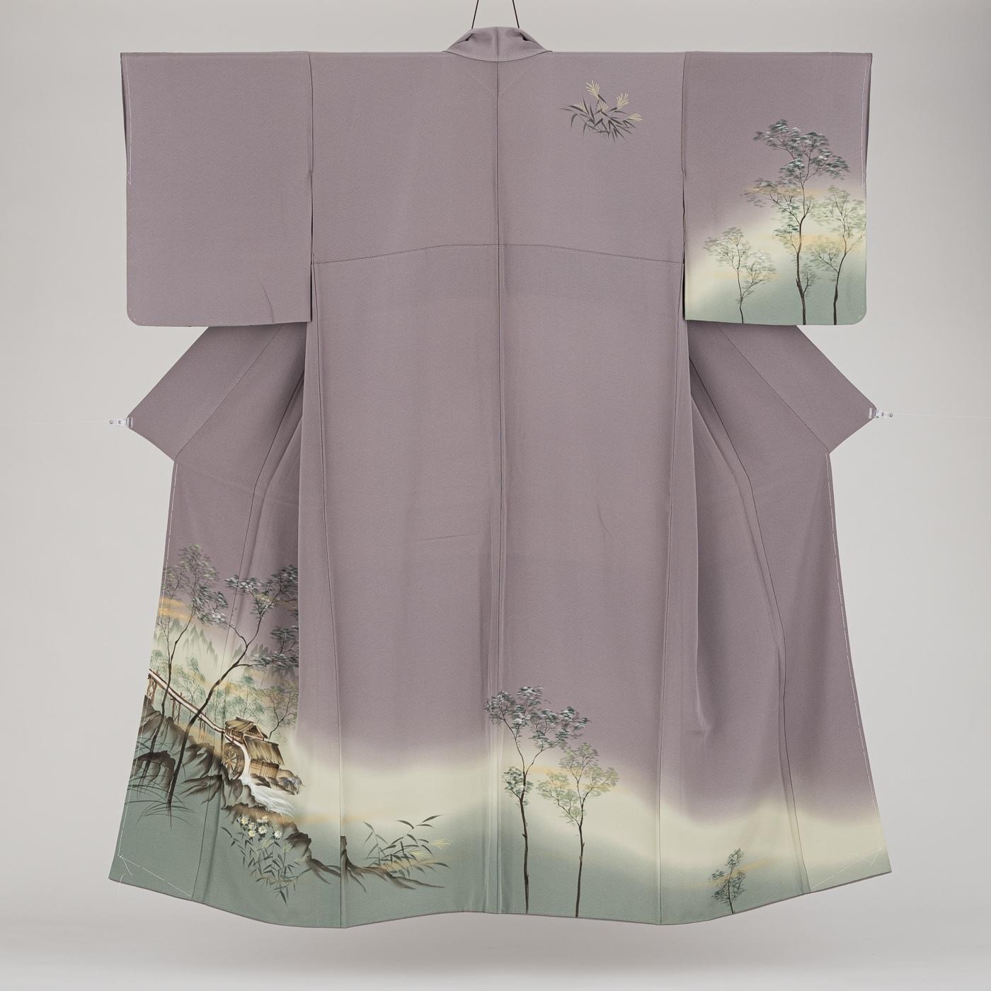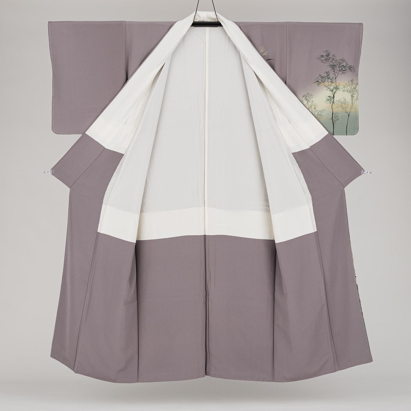 落ち着いた紫から青みグレーへ変化する暈し染めがシックで落ち着いた雰囲気。
