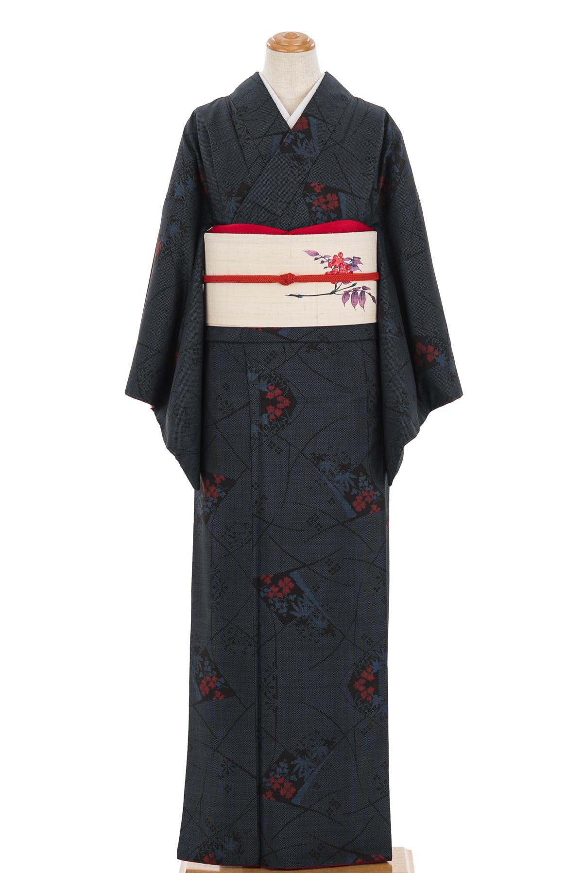 今時に草花模様を織り出した大島紬の着物です。