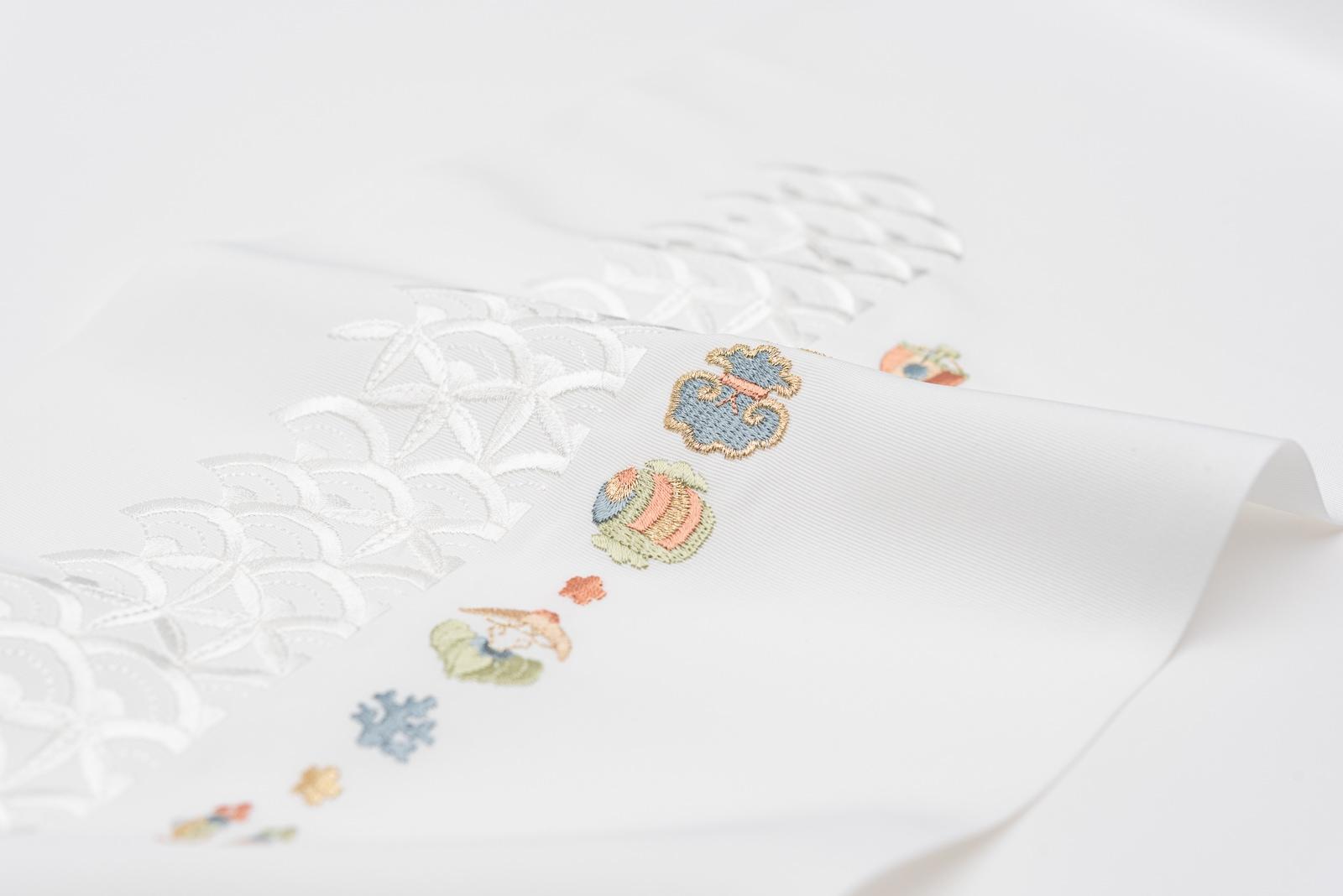片面は宝尽くし、もう片面は青海波模様と異なった柄がデザインされておりますので着物に合わせて使い分けがお楽しみいただけます。